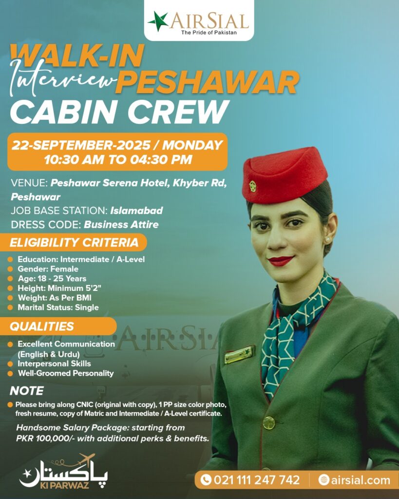Airsial Cabin Crew jobs 2025 airsial.com/careers offers opportunities For Pakistani Male and Female apply online. Are you looking for an amazing career opportunity in the Private sector in 2025? Airsial Cabin Crew jobs 2025 airsial.com/careers opportunities Online Apply has released the latest job openings in 2025 for exciting career opportunities for job seekers for Pakistan.