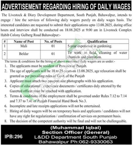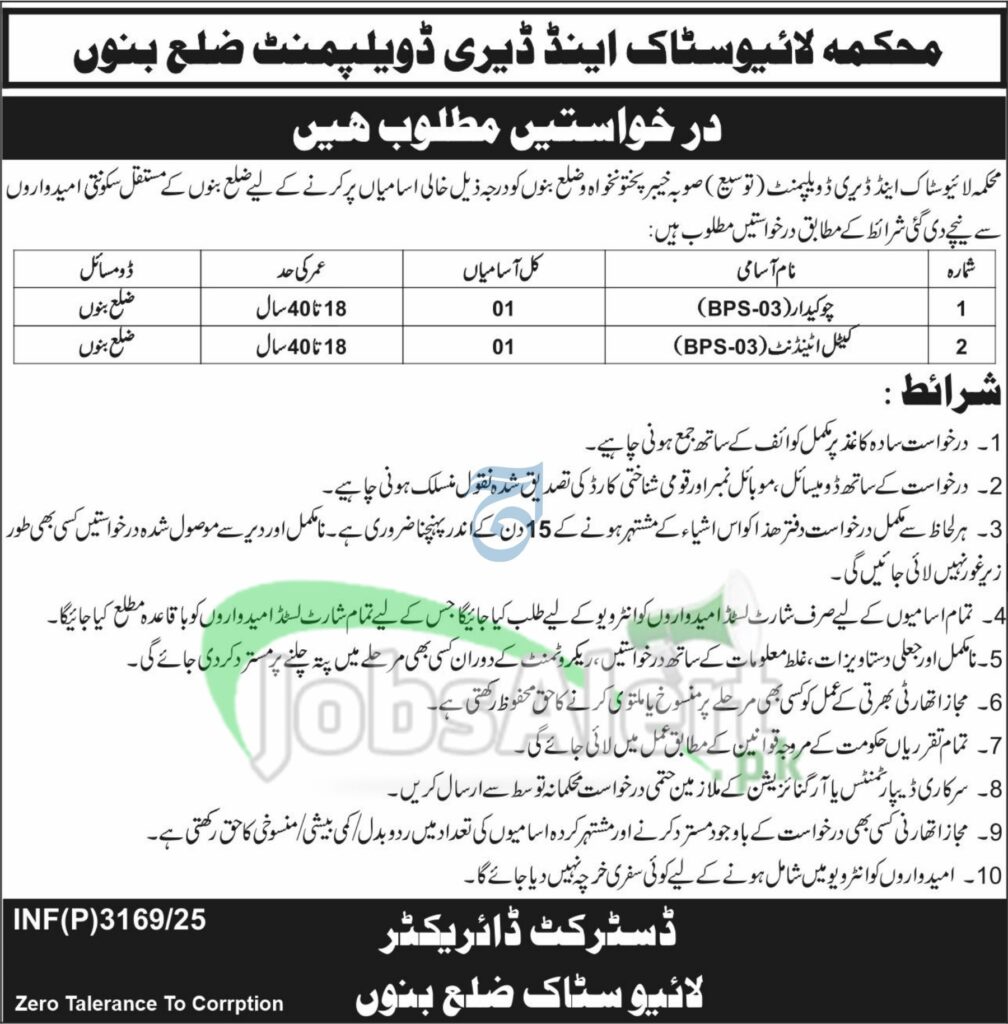 | Department | Livestock and Dairy Development Department Punjab Jobs 2025 |